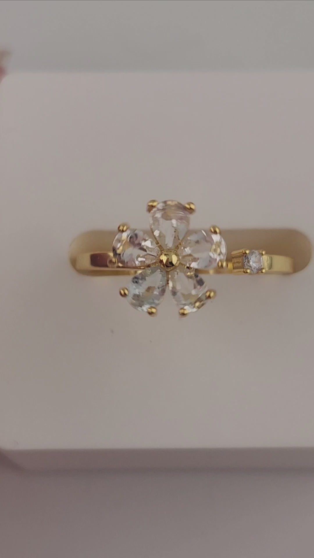 Fidget Spinning Clear Quartz Flower Ring - Gold Adjustable