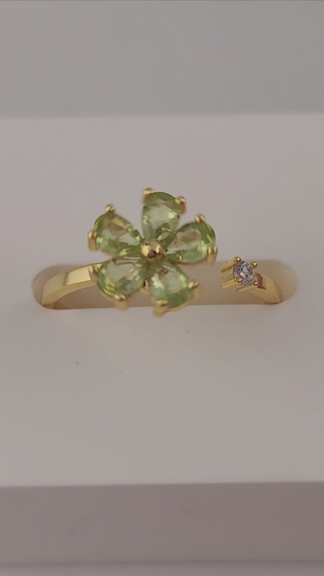 Fidget Spinning Peridot Flower Ring - Gold Adjustable